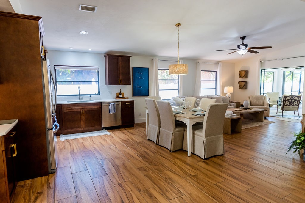 Close to Beaches. This house was completely renovated in 2020, It has large spacious kitchen sub zero refrigerator and large living room. Full size Washer and Dryer & Appliances. The Living Room has a beautiful View of a Pond Beaming with Life, Turtles, Ducks, Egrets & Fish. The House sits by itself on a very large cul-de-sac. Private back yard with a privacy Fence and Pond, for your use. (No shared areas.) Guests say pictures do not do this unit justice.
