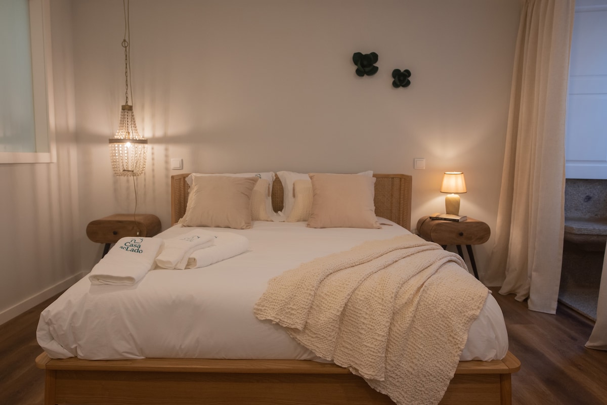 Το A Casinha είναι ένα γαλήνιο εξοχικό καταφύγιο σε ένα παραδοσιακό Minho Quinta. Περιτριγυρισμένο από αμπελώνες, κήπους και τον ρυθμό της αγροτικής ζωής, προσφέρει ένα κομψό σπίτι 2 υπνοδωματίων - ιδανικό για επισκέπτες που αναζητούν ηρεμία, αυθεντικότητα και πιο αργούς ρυθμούς. Προσεκτικά ανακαινισμένο με φυσικά υλικά, το σπίτι συνδυάζει την παράδοση με την άνεση. Απολαύστε την πισίνα με θαλασσινό νερό, την υπαίθρια τραπεζαρία και τη γοητεία της φύσης σε έναν χώρο σχεδιασμένο για προσεγμένη, οικολογική ζωή.