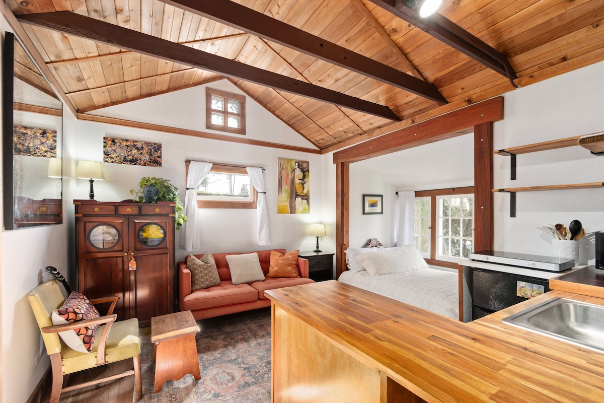Βρισκόμαστε στους Νότιους Λόφους του Γιουτζίν. Κοντά στο U of O με εύκολη πρόσβαση με αυτοκίνητο σε παροχές. Ο ξενώνας του γκαράζ βρίσκεται σε 3 δασωμένα στρέμματα με νότια θέα στο Creswell και χειμερινή θέα στις Τρεις Αδελφές στα ανατολικά. Χτισμένο το 2020, το στούντιο διαθέτει μεγάλη ντουζιέρα, πλήρως εξοπλισμένη κουζίνα και παροχές πλυντηρίου. Χωράει 6 άτομα (υπέρδιπλο κρεβάτι, διπλός καναπές-κρεβάτι και δύο μονά κρεβάτια) Στάθμευση για πολλά αυτοκίνητα, αν χρειαστεί. Χαλαρώστε σε ένα γαλήνιο, φυσικό περιβάλλον στο Όρεγκον, ανυπομονούμε να σας φιλοξενήσουμε.