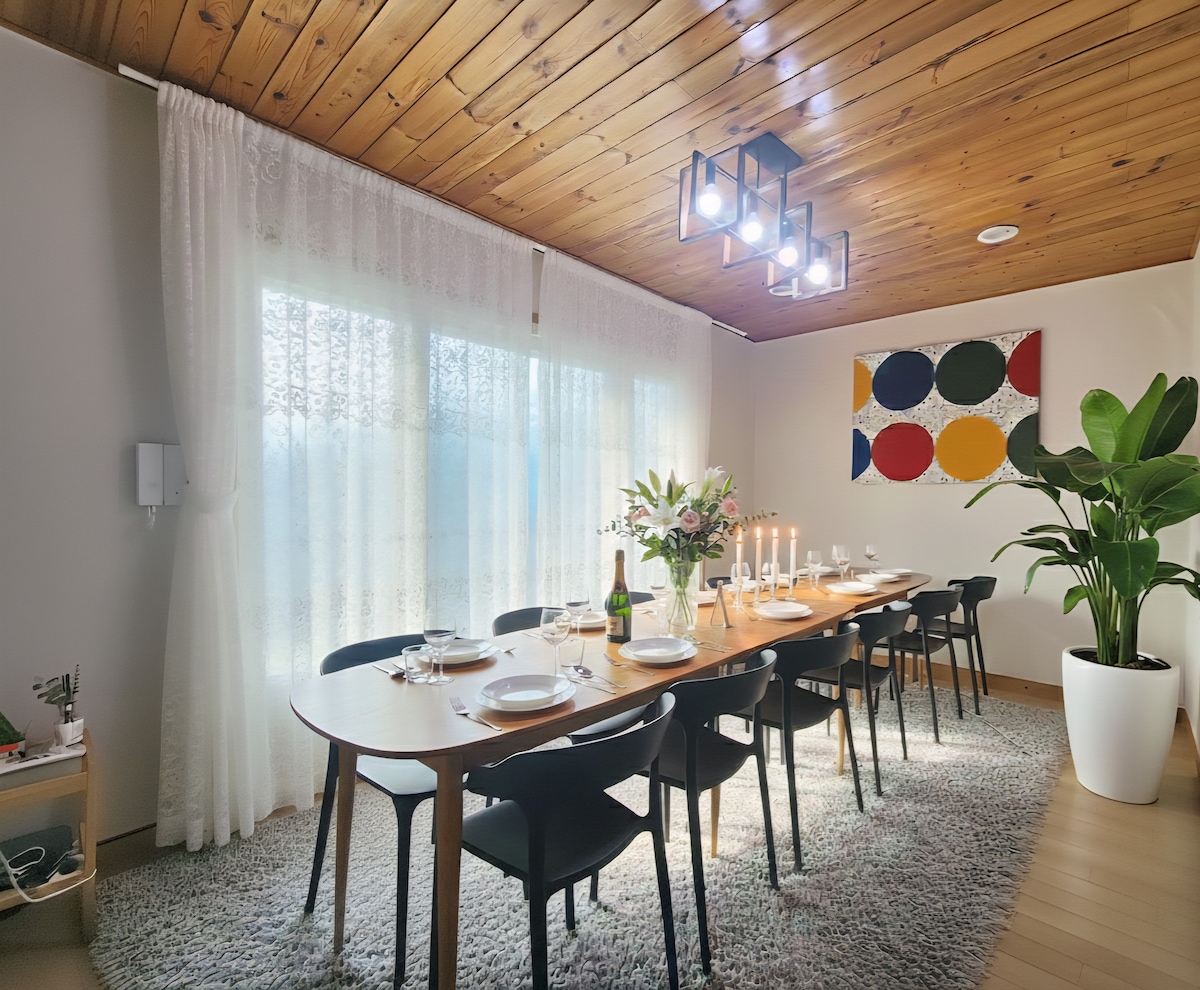 Just 2 km from Gyeongbokgung, this rare grand mansion opens to calming Bugaksan views. Our BS signature—Breeze & Sunrise—unites the Horizon Spa ‘Sunrise’ (family jacuzzi + Finnish sauna) with the Urban Garden ‘Breeze’ (secret fire pit, winter-warm BBQ) 5BR/3BA for up to 20 with three stories. However, In a 2-minute walk, there are bus stops linked to every facet of Seoul. For those who seek a more convenient, COZE will support 1:1 taxi arrangement with tailored all-in-one concierge service
