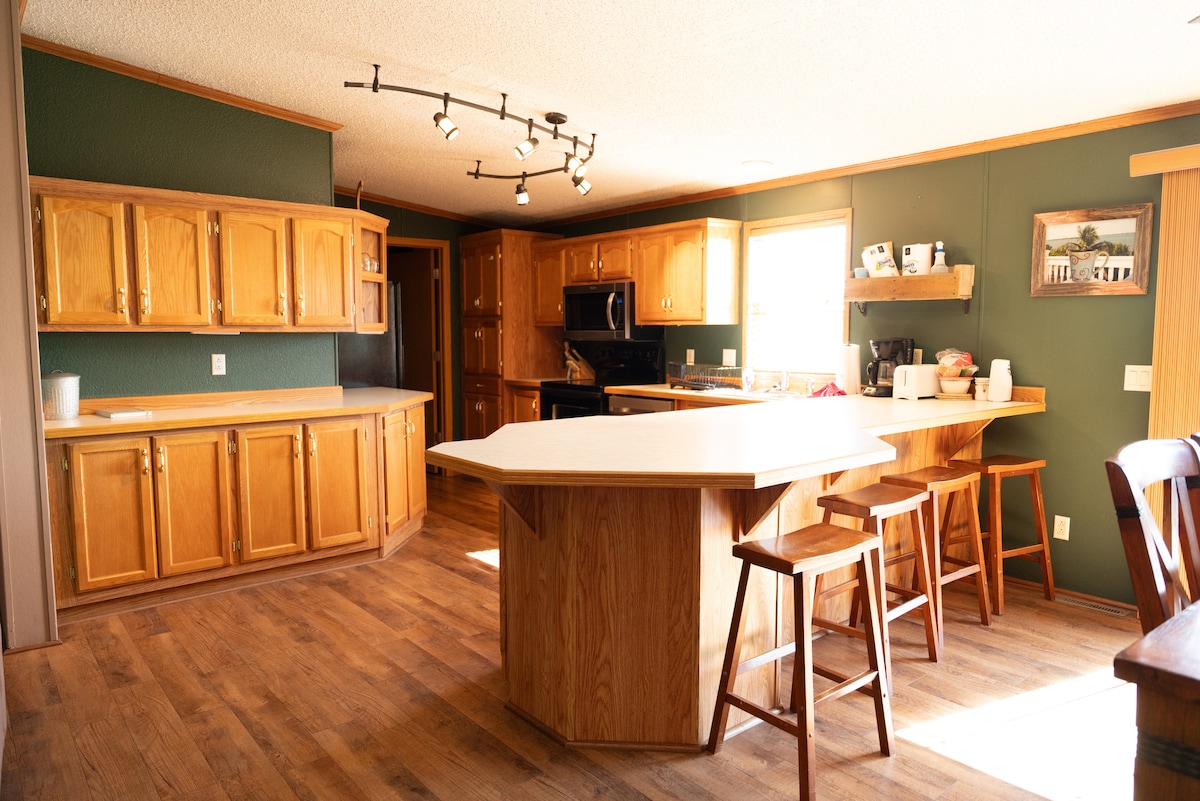 Αυτό το άνετο σπίτι έχει ανοιχτή διαρρύθμιση και πολύ οικεία αίσθηση. Είναι υπέροχο για μεγάλες ομάδες, όπως κυνηγετικές, αλιευτικές και εργατικές ομάδες. Αν σκοπεύετε να περάσετε περισσότερες από λίγες μέρες στην περιοχή, αυτό είναι το κατάλληλο μέρος. Βρίσκεστε σε κοντινή απόσταση από τα περισσότερα πράγματα που θα χρειαστείτε στην πόλη και λίγα λεπτά με το αυτοκίνητο από εξαιρετικά σημεία για κυνήγι και ψάρεμα. Τέσσερα υπνοδωμάτια μπορούν εύκολα να φιλοξενήσουν οκτώ άτομα, καθώς και ένα επιπλέον σετ κουκέτες στον χώρο πλυντηρίου που επιτρέπει δύο επιπλέον φίλους.