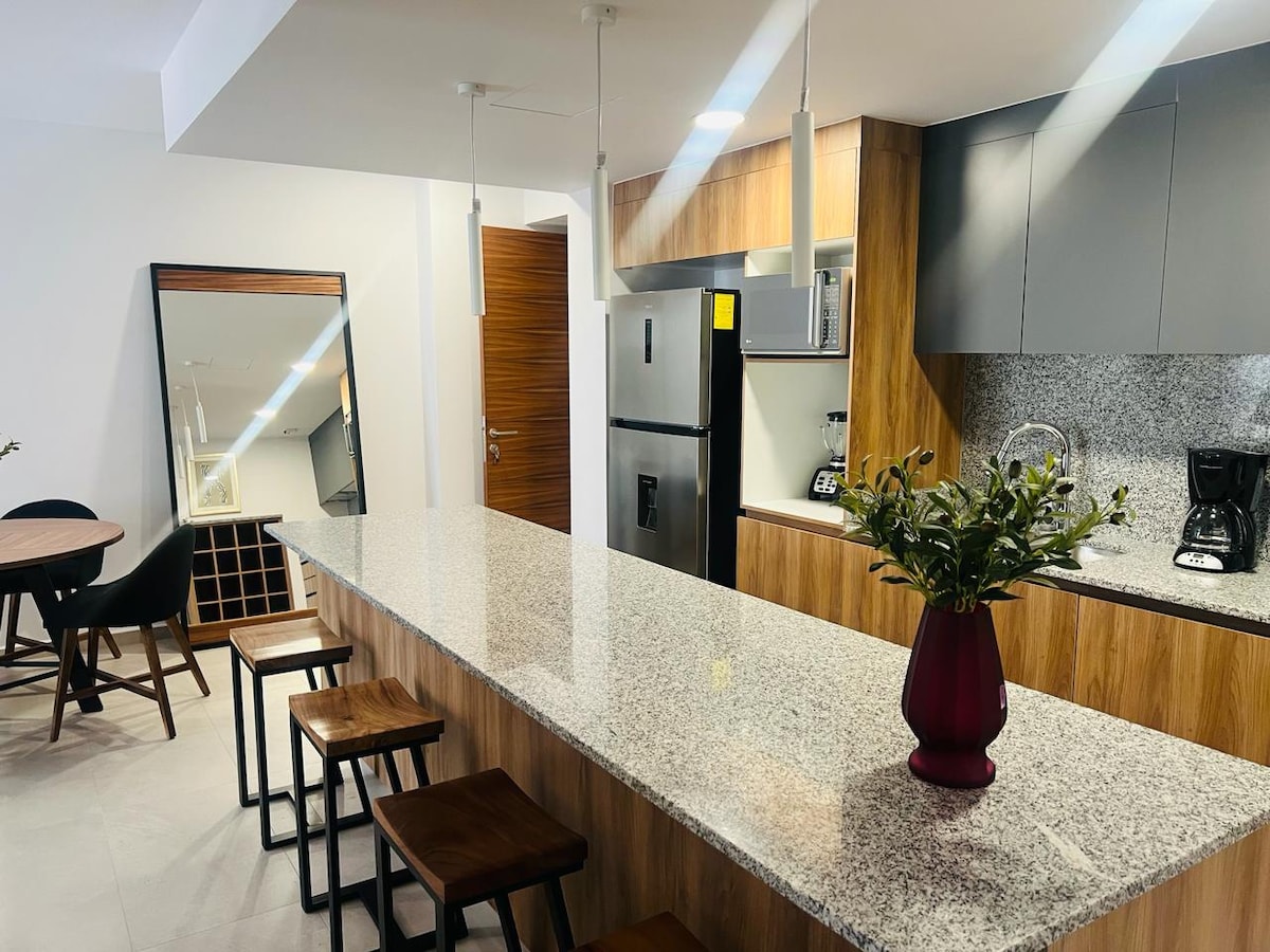 Expo Guadalajara σε 2 λεπτά. Ολοκαίνουργια σοφίτα 3ου ορόφου με κεντρικό κλιματιστικό, Wi-Fi 500 Mbps, κρεβάτι queen size + καναπές, εξοπλισμένη μικρή κουζίνα, μεγάλη τηλεόραση, τραπεζαρία και αποκλειστική θέση στάθμευσης. Είσοδος από τη ρεσεψιόν, έξυπνη κλειδαριά στην πόρτα. Προνόμια κτιρίου: χώρος συνεργασίας + σαλόνι με θέα στον ορίζοντα, γυμναστήριο, βεράντα γιόγκα, ψησταριές, τζάκια και κοινωνικά δωμάτια, μπιλιάρδο και τραπέζι fuzzball. Κοντά στην Chapalita και το Mercado de Abastos. Δείτε την εικονική περιήγηση και, στη συνέχεια, κάντε κράτηση για τις ημερομηνίες σας ή στείλτε μου μήνυμα με ερωτήσεις.