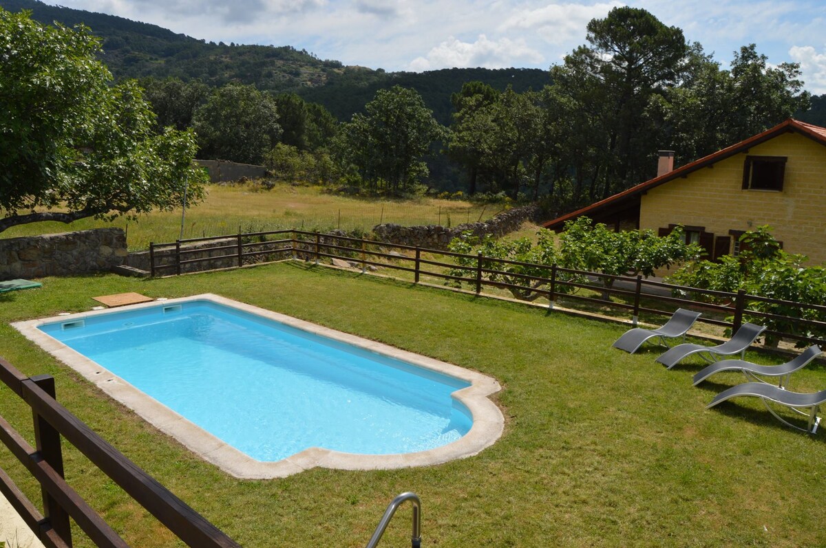 Σπίτι με πισίνα 100% αυτάρκης που χτίστηκε σύμφωνα με μια βιώσιμη φιλοσοφία στη μέση ενός αγροκτήματος με εκπληκτική θέα σε όλο το Φυσικό Καταφύγιο Garganta de los Infiernos και στην κοιλάδα Valle del Jerte. Το κτήμα έχει 2 εκτάρια γης όπου μπορείτε να περπατήσετε ανάμεσα σε κερασιές, δαμάσκηνες και άλλα οπωροφόρα δέντρα, με οικολογικούς οπωρώνες, πισίνες και ένα ρυάκι που περικυκλώνει το κτήμα. Το τραγούδι των πουλιών, ο ήχος του νερού που πέφτει από το ρυάκι, η συγκομιδή των σπαρμένων στον κήπο... Αγνή φύση TR-CC-00429