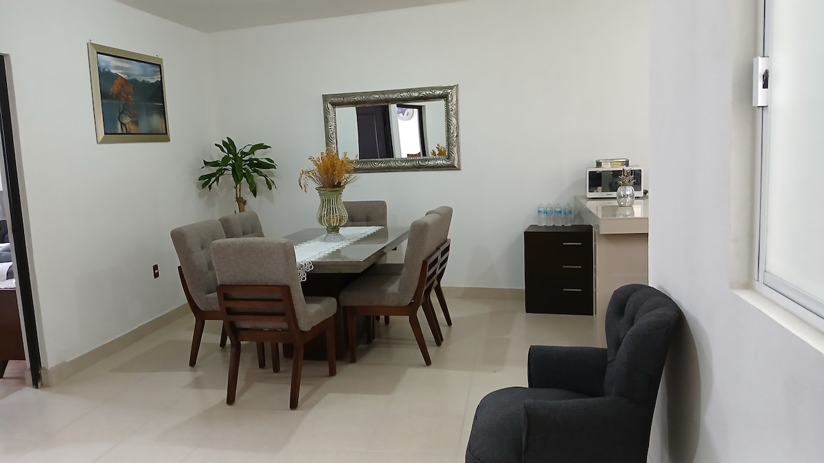 Relájate con toda la familia en este alojamiento donde la tranquilidad se respira dentro de un fraccionamiento privado con vigilancia, contando con parques, uno de ellos adaptado para caminar solo o con tu mascota, contando con aparatos sencillos para realizar ejercicios