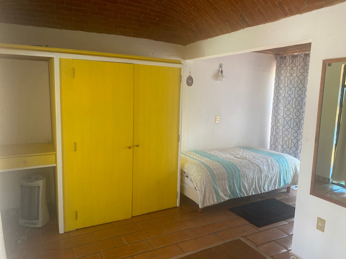 Bungalow for 4 people located in the beautiful cactus garden of a residential house within a private and safe subdivision 15 minutes from the village of Tequisquiapan. Linda terraza με ψησταριά, τεράστιο κήπο με αιώρες και θέα στα θερμοκήπια και τον θεϊκό κήπο. Χώρος στάθμευσης έξω από το σπίτι, προαιρετικό επιπλέον πρωινό, πλυντήριο ρούχων και στεγνωτήριο επίσης επιπλέον προαιρετικά.