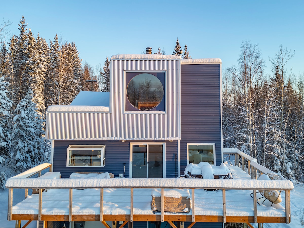 Αυτό το μοναδικό ξυλόσπιτο, προσφέρει την πιο θεαματική θέα 270° τόσο για την ανατολή, το ηλιοβασίλεμα, όσο και για το Βόρειο Σέλας! Αυτό το μοναδικό ξυλόσπιτο βρίσκεται στην κορυφή του δημοφιλούς Ester Dome και έχει θέα σε όλο το Φέρμπανκς και τις γύρω περιοχές. Απέχει μόλις 11 μίλια από το αεροδρόμιο, υπάρχουν καταπληκτικά μονοπάτια πεζοπορίας/ποδηλασίας σε κοντινή απόσταση. Με πλεόνασμα παραθύρων, αναδεικνύονται η εκπληκτική τούνδρα/τα βουνά της Αλάσκας. Μέσα σε αυτό το ειδικά κατασκευασμένο ξυλόσπιτο, υπάρχει ένα άνετο σαλόνι και μια πλήρως λειτουργική κουζίνα/μπάνιο.