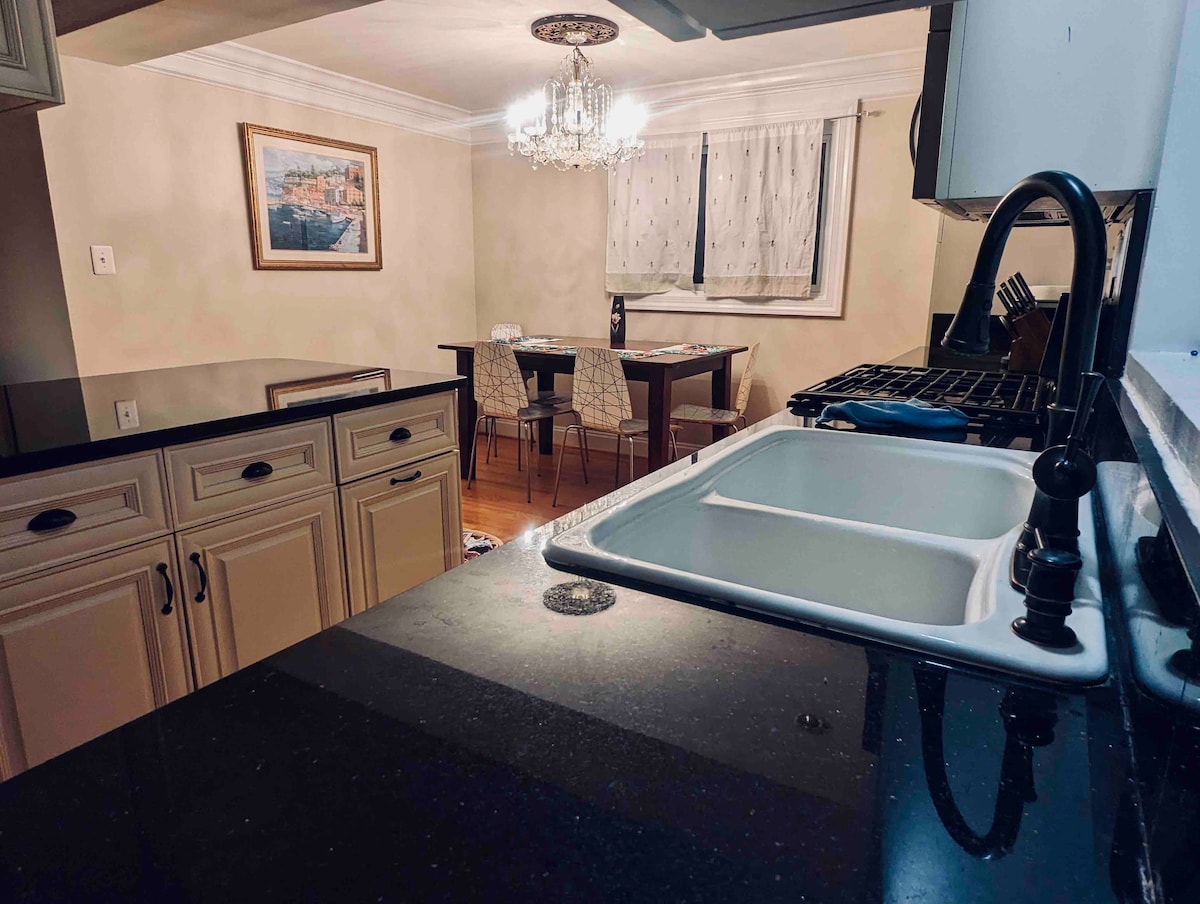 Ιδιωτική σουίτα/διαμέρισμα 1 υπνοδωματίου/1 μπάνιου (600 τ.μ.) σε ένα ολοκαίνουργιο μονοκατοικία. Η σουίτα επισκεπτών βρίσκεται στο πάνω επίπεδο του σπιτιού και είναι προσβάσιμη με ασανσέρ από το χωλ όταν μπαίνετε από την μπροστινή βεράντα. Μοιάζει με ιδιωτικό διαμέρισμα ενός υπνοδωματίου, με έναν άνετο χώρο διαβίωσης, ένα υπνοδωμάτιο και μια κουζίνα. Η κουζίνα είναι πλήρως εξοπλισμένη με ψυγείο πλήρους μεγέθους, πλυντήριο πιάτων, φούρνο μικροκυμάτων, ηλεκτρική εστία πάγκου, καφετιέρα, βραστήρα, μαγειρικά σκεύη, πιάτα, φλιτζάνια, ποτήρια.