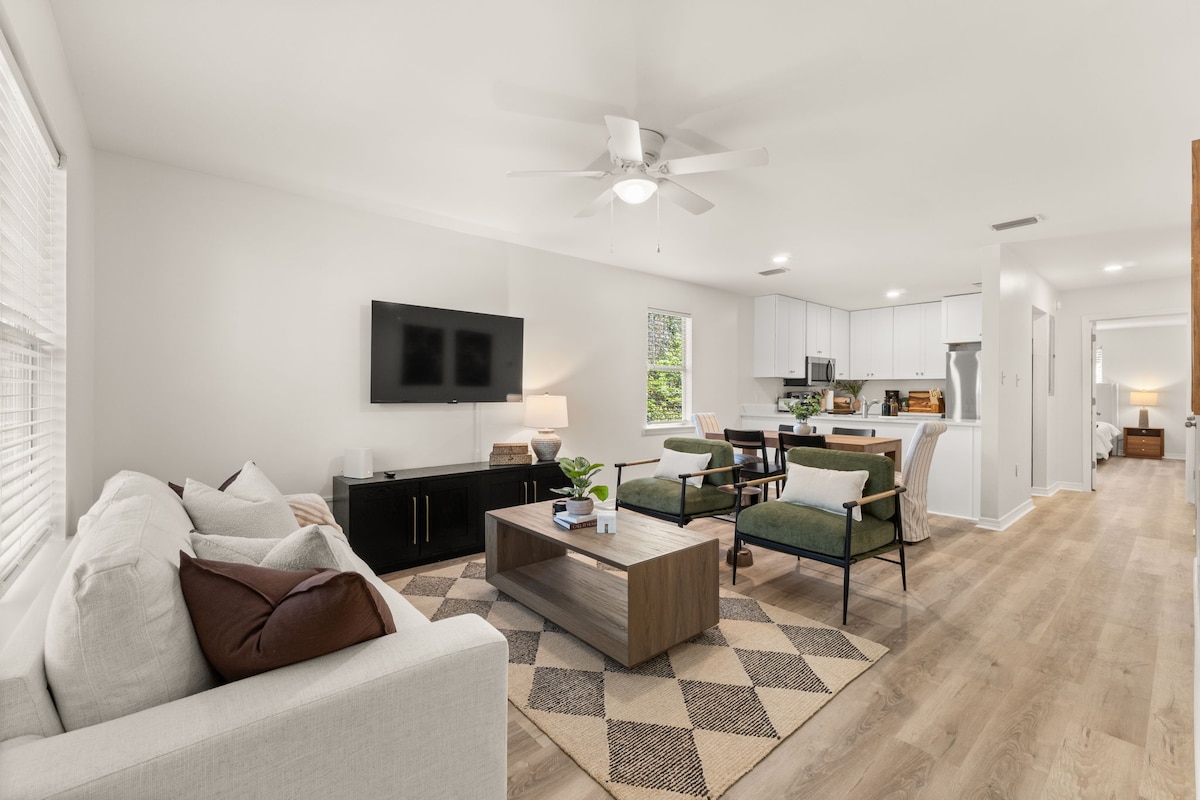 Νέο διαμέρισμα στο όμορφο κέντρο του Fairhope. Σε μικρή απόσταση με τα πόδια από όλα όσα έχει να προσφέρει το Fairhope. Εστιατόρια, ψώνια, μουσεία, καφετέριες, κοινοτικά πάρκα και μια σύντομη βόλτα για να δείτε το γραφικό ηλιοβασίλεμα του Mobile Bay. Αυτό το διαμέρισμα είναι διαμορφωμένο έτσι ώστε το μόνο που χρειάζεστε είναι τα ρούχα σας και η επιθυμία να περάσετε καλά. Το διαμέρισμα βρίσκεται στον δεύτερο όροφο με καλά φωτιζόμενα σκαλοπάτια. Πρέπει να μπορείτε να ανεβαίνετε σκάλες. Δύο ιδιωτικοί χώροι στάθμευσης χωρίς επιπρόσθετη χρέωση.