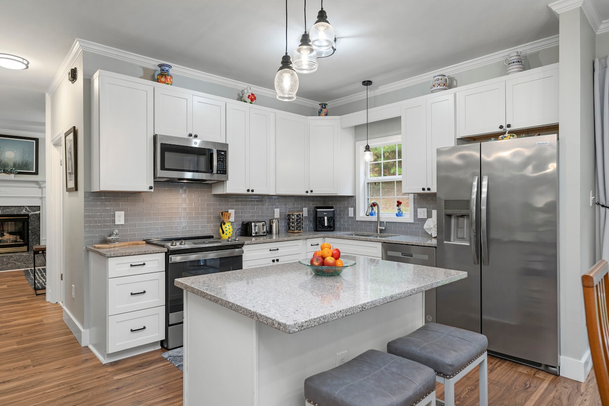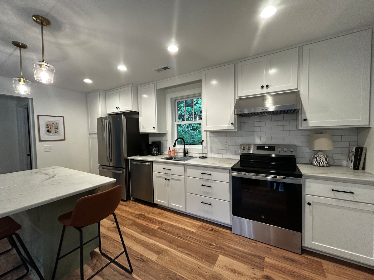 Αποδράστε στην ηρεμία σε αυτή τη γοητευτική όαση μισού στρέμματος δίπλα σε ένα θαυμάσιο κρατικό πάρκο και λίγα λεπτά από τα τοπικά στέκια. Πιείτε τσάι στις βεράντες με θέα στους καταπράσινους κήπους. Χαλαρείτε τη σκιά της βελανιδιάς. Μπείτε μέσα στα αυθεντικά ξύλινα πατώματα, μια μοντέρνα κουζίνα, άνετα κρεβάτια και καλλιτεχνικές πινελιές σε όλους τους χώρους. Μόνοι ή με τους αγαπημένους σας, αυτό το μοναδικό καταφύγιο στο Bynum σάς περιβάλλει με ηρεμία. Περπατήστε στην όχθη του ποταμού ή μέσα από την πόλη και αφήστε τα κυματιστά ρεύματα να ηρεμήσουν την ψυχή σας.
