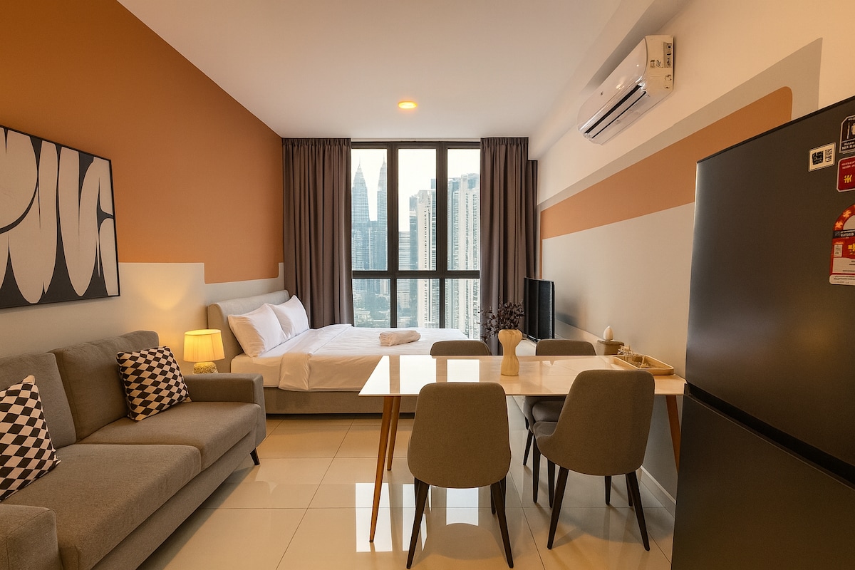 Απολαύστε μια εμπειρία γεμάτη στιλ σε αυτόν τον χώρο που βρίσκεται κεντρικά: - 10 λεπτά με τα πόδια από τον Δίδυμο Πύργο KLCC - 5 λεπτά με το αυτοκίνητο από τον Δίδυμο Πύργο KLCC - 5 λεπτά με το αυτοκίνητο από το εμπορικό κέντρο Pavilion. - Κοντά στο Bukit Bintang Food Paradise και στο Entertainment Center - Μεγαλοπρεπής θέα στο KLCC (από την πισίνα). Εγκαταστάσεις: - Τηλεόραση 55" με πρόσβαση στο Netflix - Πισίνα υπερχείλισης με θέα στους Δίδυμους Πύργους KLCC, τον Πύργο KL και τον νυχτερινό ορίζοντα. - Τζακούζι και σαλόνι πισίνας - Πρόσβαση σε γυμναστήριο - Γρήγορη σύνδεση Wi-Fi - Ζεστό νερό - Κλιματιστικό.