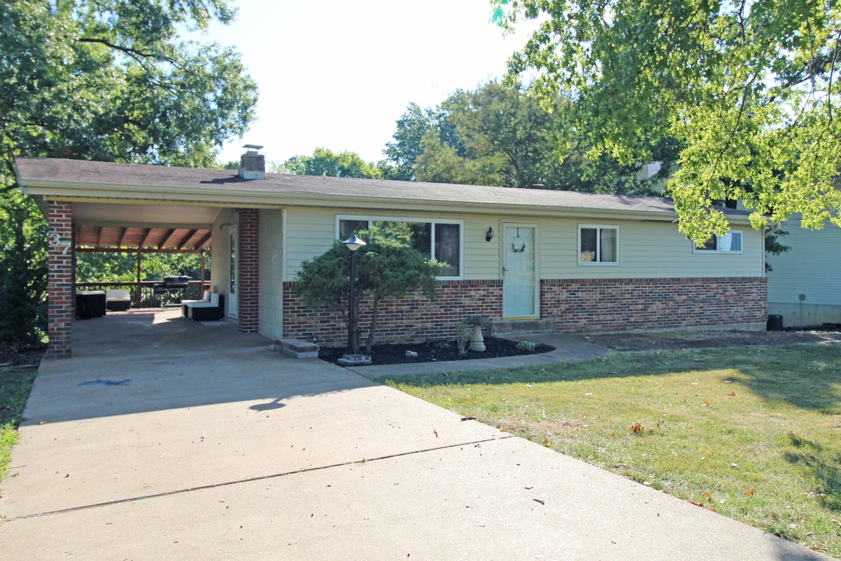 Καλά να περάσετε στο Σεντ Louis. Η κουζίνα είναι πλήρως εξοπλισμένη με μπαρ καφέ, πιάτα, κατσαρόλες και τηγάνια. Τα τρία υπνοδωμάτια, το δωμάτιο Cardinals, το δωμάτιο Blues και το δωμάτιο Union Station έχουν το καθένα ένα μεγάλο διπλό κρεβάτι με ευρύχωρες ντουλάπες. Μια μεγάλη σκεπαστή βεράντα για μπάρμπεκιου. Το πλήρες υπόγειο είναι έτοιμο για οικογενειακή διασκέδαση! Ένα πλήρους μεγέθους δωμάτιο πλυντηρίου είναι εκεί για δική σας διευκόλυνση. Το Arch, το Stadium, το Six Flags, το Science Center, ο ζωολογικός κήπος, το Forest Part κ.λπ. απέχουν λιγότερο από 30 λεπτά. Τα τοπικά ψώνια είναι μέσα σε λίγα λεπτά.