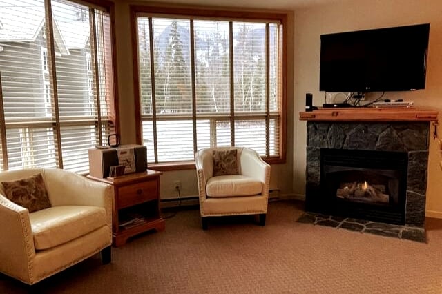 Just a few minutes walk to the chair lifts, you can ski right back in and enjoy access to the large hot tubs. This large 1 bedroom, 1 bathroom condo is perfect year ‘round. It has one of the best views of the mountain and is a main floor unit with open space concept and high ceilings. This condo has everything you need to enjoy your stay and all that Fernie has to offer. See my other listings for option to rent the adjoining hotel room-like 1 bedroom / 1 bathroom unit, sleeping 7.