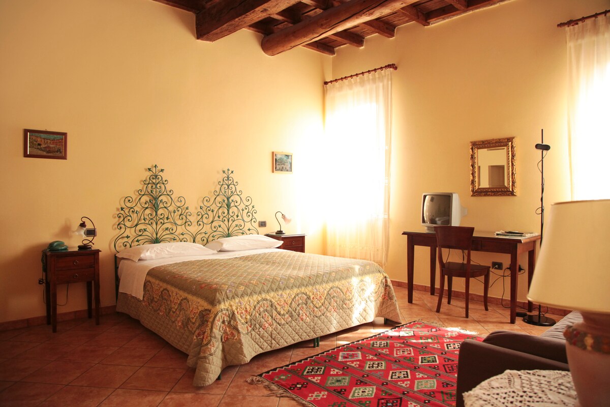 Case Cavallini Sgarbi are ready to welcome you in the very heart of medieval Ferrara! The houses, located in a historical building, in the XVI Century were home for the poet Ludovico Ariosto, who wrote here some parts of his masterpiece, the poem “Orlando Furioso”. Vittorio Suite, at the first floor, is perfect to host an entire family: surround yourselves in a historical atmosphere, with furnitures that tell the story of Cavallini Sgarbi family and works of art created for these rooms.