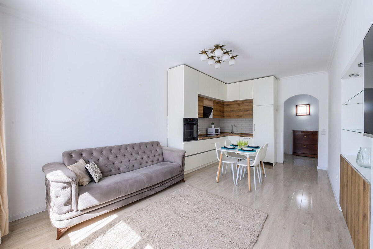 Enjoy a stylish getaway in the city center. My home is a cozy and bright space designed for a relaxing getaway. The interior is meticulously designed: warm tones, neat furniture, cleanliness, and a light, airy atmosphere. It's a pleasant place to wake up, work, relax, and spend evenings. The apartment is ideal for guests who value comfort and order. Situated in the best area of the city, with easy access to any point.