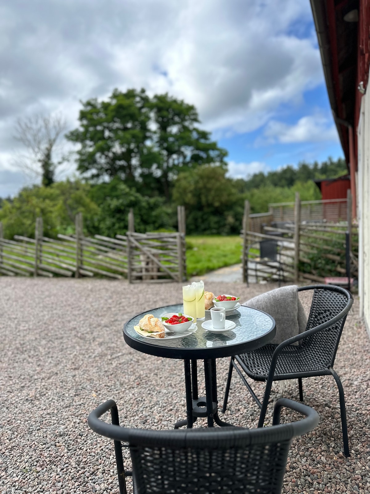 Ο μικρός ξενώνας μας στην Onsala, φωτεινός και ευάερος σε ξεχωριστό μέρος του κήπου. Σύντομη απόσταση με τα πόδια από τη θάλασσα και την παραλία. Δύο άνετα κρεβάτια κάτω και δύο στρώματα στον ύπνο. Τουαλέτα, φούρνος μικροκυμάτων, μικρό ψυγείο, μικρή εξωτερική κουζίνα, μπάρμπεκιου, σεντόνια, πετσέτες και έπιπλα εξωτερικού χώρου στη βεράντα και στην αυλόπορτα. Ιδιωτικό ντους μέσω ιδιωτικής εισόδου στο μεγάλο σπίτι κοντά. Αιώρα και συνήθως δύο ποδήλατα. Η Teresa, εικαστική καλλιτέχνης, δουλεύει στο στούντιο, στον κήπο ή κάνει ένα διάλειμμα στην παραλία. Απολαμβάνουμε τους επισκέπτες και κάνουμε ό, τι καλύτερο μπορούμε για να νιώσουν όλοι άνετα.