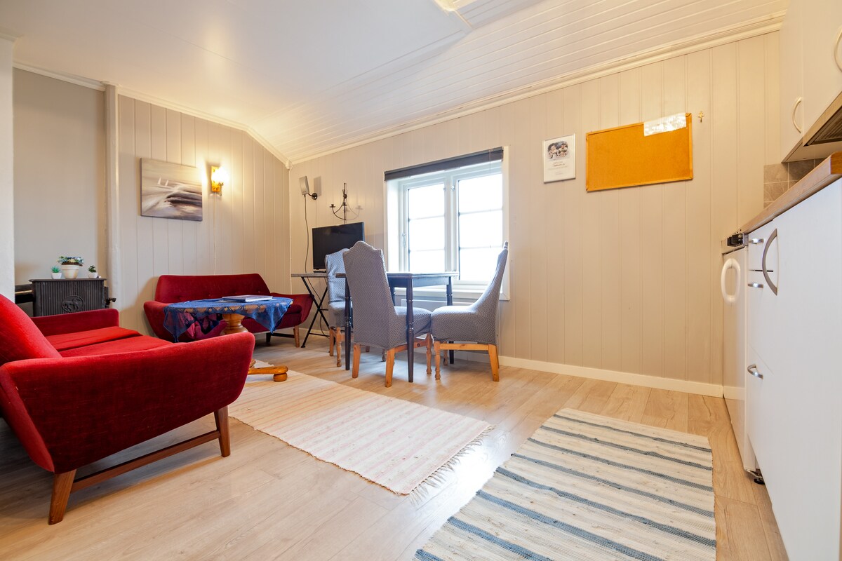 Χαλαρώστε σε αυτόν τον ήσυχο, κομψό χώρο. Από αυτό το πρόσφατα ανακαινισμένο σπίτι έχετε μια μοναδική θέα στο ιστορικό ψαροχώρι Å. Βρίσκεται σε έναν λόφο, μπορείτε να απολαύσετε πανοραμική θέα στη θάλασσα και τα βουνά, με το βόρειο σέλας να χορεύει στον ουρανό τους χειμερινούς μήνες. Το σαλόνι και η κουζίνα του σπιτιού βρίσκονται στρατηγικά στον τελευταίο όροφο για να μεγιστοποιήσουν τη θέα. Η μοντέρνα κουζίνα είναι καλά εξοπλισμένη για όλες τις μαγειρικές σας ανάγκες και η πλήρως αυτόματη μηχανή εσπρέσο εξασφαλίζει τέλειο καφέ.