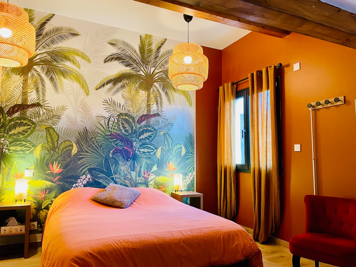 Δροσερό, άνετο και ευρύχωρο (90 τ.μ.) σπίτι σε 2 ορόφους. Μεγάλη κουζίνα, σαλόνι και βεράντα στο επίπεδο του δρόμου και υπέροχο 1 υπνοδωμάτιο με διπλό κρεβάτι σε ανοιχτό χώρο στον 2ο όροφο. Αυτό το γαλήνιο σπίτι, ένα ανακαινισμένο αγροτόσπιτο σε ένα βουνό σε ένα μεσαιωνικό χωριό, 16 λεπτά από τον αυτοκινητόδρομο A6, είναι μια ιδανική στάση για διακοπές στις Άλπεις ή στη νότια Γαλλία. Λάβετε υπόψη ότι υπάρχει ένα στούντιο διαμέρισμα με δική του είσοδο στο κάτω ισόγειο - ενοικιάζεται ξεχωριστά.