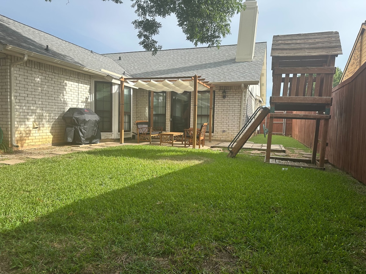 Χαλαρώστε με όλη την οικογένεια σε αυτό το ήσυχο καταφύγιο. Το άνετο σπίτι μας με 3 υπνοδωμάτια και 2 μπάνια προσφέρει κομψό εσωτερικό. Βρίσκεται σε αδιέξοδο σε μια ασφαλή γειτονιά και σε κοντινή απόσταση από το πάρκο με παιδική χαρά, γήπεδο ποδοσφαίρου, γήπεδο μπάσκετ και λίμνη. Εύκολη πρόσβαση στο αεροδρόμιο DFW, στο στάδιο Cowboy, στο Texas Motor Speedway, σε ψώνια και πολλά άλλα. Έχουμε διακοσμήσει με γνώμονα την άνετη οικογενειακή αίσθηση. Στόχος μας είναι να νιώσετε σαν στο σπίτι σας.
