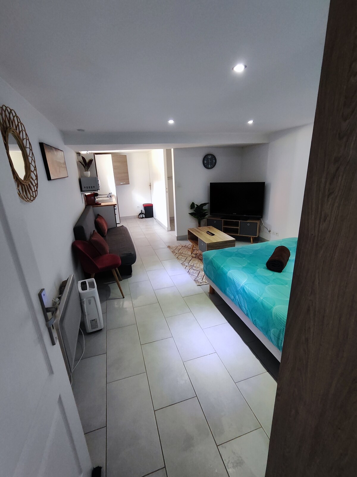 Ήσυχο στούντιο 20 τ.μ. Βρίσκεται στα περίχωρα του Παρισιού. Κοντά στο Stade de France και το Marché aux Puces. Ένα σαλόνι με εντοιχισμένη κουζίνα. Ένα υπνοδωμάτιο/υπνοδωμάτιο με ντουλάπα αποθήκευσης. Μπάνιο με τουαλέτα (sanibroyeur). Αυτός είναι ένας μικρός χώρος που προσπαθήσαμε να κάνουμε ευχάριστο σε προσιτή τιμή. Μη διστάσετε να επικοινωνήσετε μαζί μας για πρόωρη άφιξη ή καθυστερημένη αναχώρηση. Οι ώρες μπορούν να επεκταθούν για να κάνουν τη διαμονή σας πιο εύκολη και πιο άνετη.