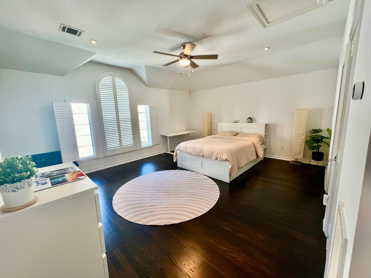 Arrive and relax in this calm, modern & minimalistic space. Private guesthouse in West U - the most coveted area in Houston! Newly renovated- the paint is still fresh- with elegant, dark wooden floors, a comfortable Queen bed with amerisleep mattress, luxury shutters and a Roman Marble Shower Bathroom. Mini Kitchenette with Microwave and Fridge, walk-in closet and private entry included. Perfect for a weekend getaway or a long term stay in the most luxurious neighborhood in Houston.