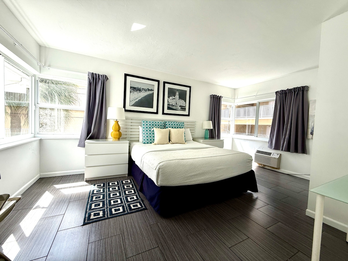 The Shores is a completely remodeled boutique hotel located in Deerfield Beach. Our stylish, cozy rooms are fully equipped with a mini refrigerator, microwave, and Keurig coffee maker. Included at no extra cost, high-speed Wi-Fi, internet, smart TV with Netflix, parking, beach towels, and chairs. The beach is just a short walk across the street. We are located within 1/2 mile of great dining, such as JBs on the Beach, The Whales Rib and the infamous Deerfield Beach Pier.