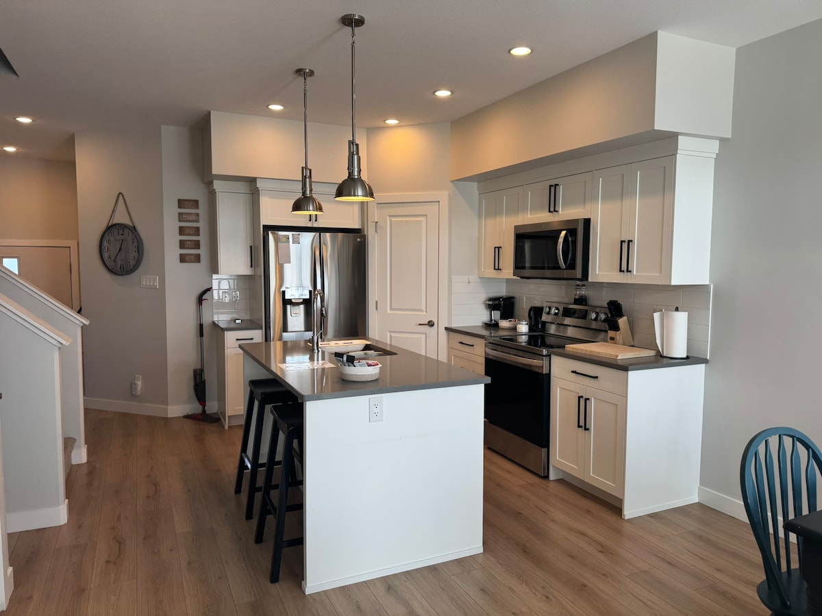 Unwind after a long day under the beautiful dual rainhead tile shower, or feel immersed in a cinematic movie in the theatre room with full surround sound and a 100" high definition projector. After, enjoy an amazing sleep on the luxurious pillow top king-size mattress. Never worry about your vehicle as you have private off-street parking with security cameras watching your vehicle. You have the entire basement suite to yourself with your own private entrance.
