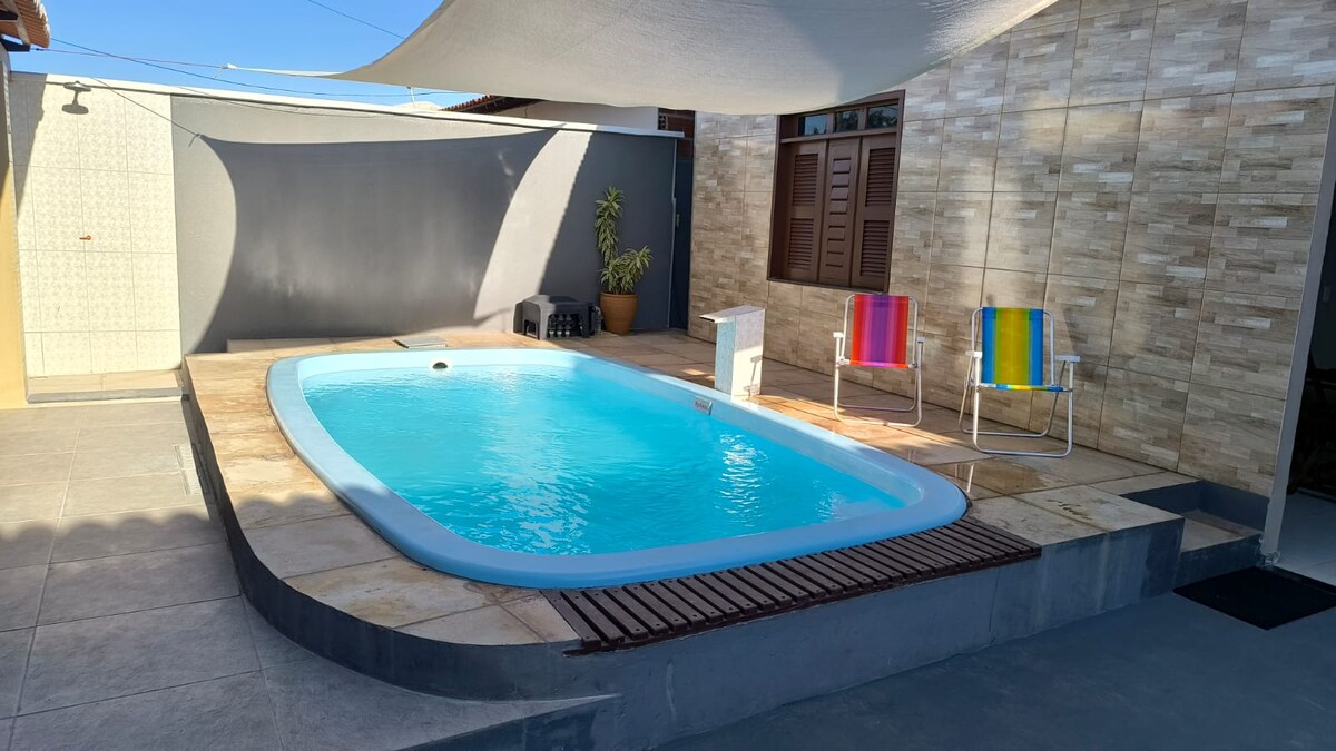 Ζήστε αξέχαστες μέρες στο Fortim! Το σπίτι μας είναι μόλις 300 μέτρα από την παραλία, όπου ο ποταμός Jaguaribe συναντά τη θάλασσα, περιτριγυρισμένο από τη φύση. Χαλαρώστε στα αποκλειστικά ξύλινα τζακούζι, απολαύστε την πισίνα, τον κήπο και το μπάρμπεκιου. Ξυπνήστε με ένα νόστιμο σπιτικό πρωινό που περιλαμβάνεται και απολαύστε την άνεση 4 κλιματιζόμενων δωματίων, Wi-Fi, γυμναστηρίου και άφθονου χώρου στάθμευσης. Η αφοσιωμένη ομάδα μας φροντίζει κάθε λεπτομέρεια για να κάνει την εμπειρία σας μοναδική! 🌴🍃