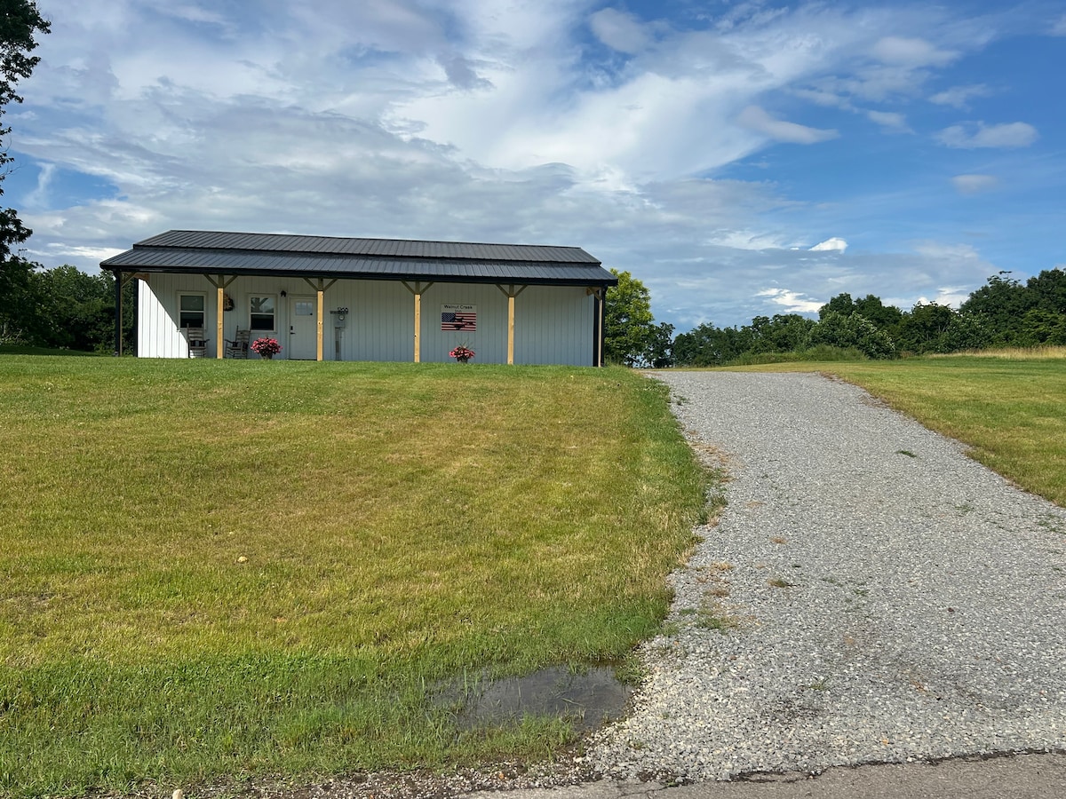 Ήσυχη ιδιωτικότητα στο αγρόκτημα των 227 στρεμμάτων, βολικό για το Bowling Green, το Mammoth Cave και τη λίμνη Barren River. Η σοφίτα των 900 τετραγωνικών ποδιών πάνω από το γκαράζ του σπιτιού μας έχει ιδιωτική εξωτερική είσοδο στην ολοκληρωμένη σύγχρονη σοφίτα της αγροικίας με εντελώς ξεχωριστό σύστημα αγωγών και σύστημα θέρμανσης, εξαερισμού και κλιματισμού. Η σοφίτα διαθέτει όλα όσα χρειάζεστε για να μείνετε στο αγρόκτημα και να χαλαρώσετε: υψηλής ποιότητας, επιπλωμένη κουζίνα για να μαγειρέψετε γεύματα και ίντερνετ με οπτικές ίνες για εργασία ή ροή. Οι καρέκλες Adirondack και το τζάκι προπανίου δημιουργούν υπέροχη θέα στα αστέρια.