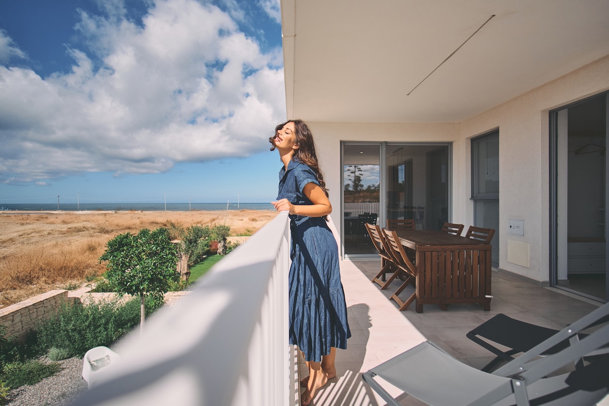 Μόλις ανακαινισμένο ,πιο ευρύχωρο και φωτεινό. Τεράστια βεράντα,εκπληκτική θέα στη θάλασσα- Δωρεάν Wi-Fi Άνετο διαμέρισμα, σε πεζόδρομο, σε απόσταση λίγων λεπτών από τη στάση του λεωφορείου, το σούπερ μάρκετ , το εστιατόριο -πιτσαρία Η μεγάλη βεράντα προσφέρει μαγευτική θέα στη θάλασσα - 2 υπνοδωμάτια ( A/C) - Μπάνιο με ντουζιέρα - Κουζίνα ( Οχι A/C) - Βεράντα/σολάριουμ με ομπρέλα και ντους - Wi-Fi - Χρηματοκιβώτιο - Πετσέτες παραλίας - Δορυφορική τηλεόραση - Μπάρμπεκιου - Πλήρως εξοπλισμένη κουζίνα.... και άλλα