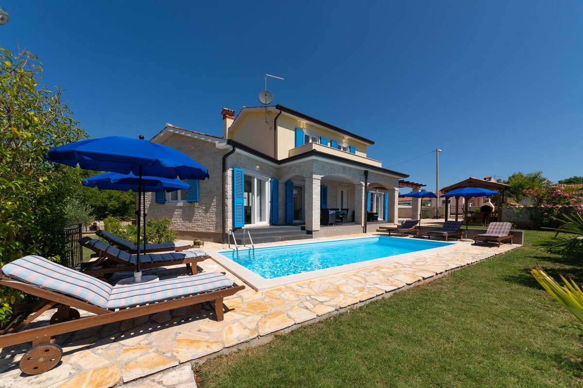 In der Nähe von Poreč, finden Sie die freistehende Villa SUN, mit Swimmingpool und Meerblick. Die 2025 fertiggestellte Villa SUN - eingerichtet mit Italienischen Designermöbeln, verteilt sich auf zwei Etagen. Ein besonderes Highlight ist die BBQ-Küche am Pool. Der Wohn- Essbereich lädt zu schönen Abenden ein. In den gemütlichen Schlafzimmern finden Sie erholsamen Schlaf und wachen mit Meerblick auf. Ein großer umzäunter Garten, für Kind und Hund zum spielen. E-Ladestation für Autos im Hof.