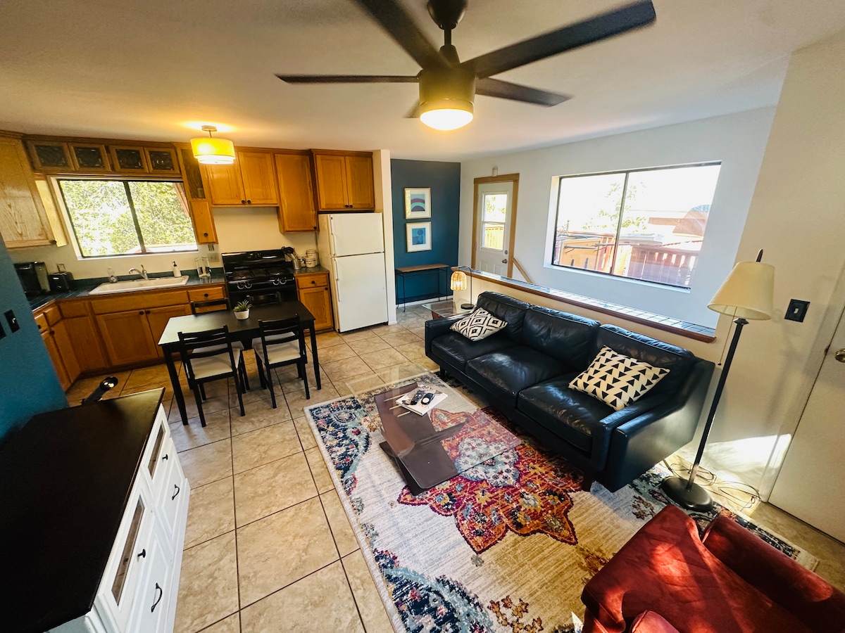 Αυτό το δημιουργικό καταφύγιο έχει σχεδιαστεί για να εμπνεύσει! Καλούμε όλους τους μουσικούς, τους συγγραφείς, τους ονειροπόλους ή όσους θέλουν να ξεφύγουν σε έναν ήσυχο χώρο. Είτε θέλετε απλά να χαλαρώσετε δίπλα στη φωτιά και να ακούσετε την εκτεταμένη συλλογή δίσκων μου είτε να κάνετε σοβαρή δουλειά στον σταθμό ηχογράφησης του γραφείου μου, θα βρείτε μια μοναδική απόδραση που ικανοποιεί όλες τις ανάγκες σας. Βρίσκεται σε υψόμετρο 6.000'ανάμεσα σε όμορφα πεύκα, όπου η θερμοκρασία είναι δροσερή και ο αέρας είναι φρέσκος, μπορείτε να απολαύσετε ανεμπόδιστα ηλιοβασιλέματα και παρατήρηση αστεριών.