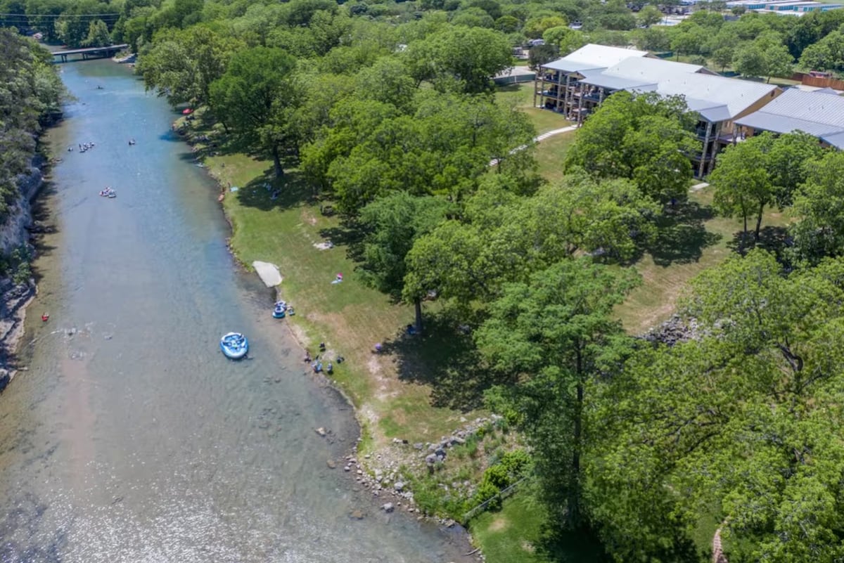 Επιπλέουν από τα διαμερίσματα! Βρίσκεται απέναντι από το Rockin R! Πρόσβαση στο ποτάμι! Ένα εξαιρετικό μέρος για να παρακολουθήσετε τους καλοκαιρινούς κολυμβητές και τις φωτιές σε κρύο καιρό! Η τρίτη νύχτα της εβδομάδας είναι δωρεάν τον Ιανουάριο και τον Φεβρουάριο! Νέο AC σε 25! Δεν χρειάζεται να φύγετε από το Historical Gruene Texas για να μείνετε στο Luxury! Απολαύστε πρόσβαση στο ασανσέρ που βρίσκεται στην μπροστινή πόρτα και μπείτε στο ευρύχωρο ρετιρέ σας με υπέροχη θέα στην ιδιωτική βεράντα σας. Φωλιασμένο κατά μήκος των οχθών του ποταμού Γκουανταλούπε, απολαύστε τα ψώνια ή τη νύχτα