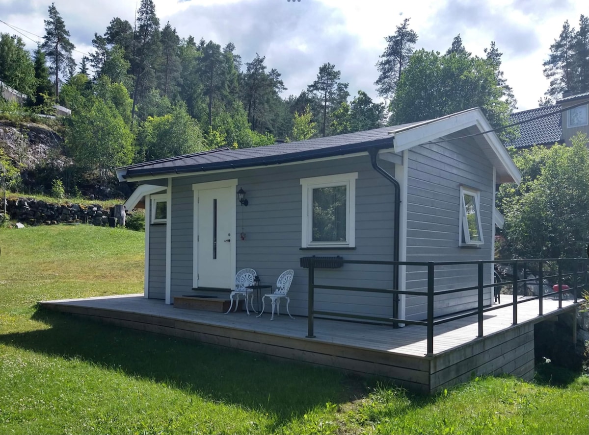 Μικρό σπίτι/καμπίνα με καταπληκτική θέα στη λίμνη Årungen. Θα έχετε τον ήλιο πάνω από τον κήπο και το ξυλόσπιτο όλη την ημέρα και ένα εκπληκτικό ηλιοβασίλεμα το βράδυ. Η καμπίνα είναι πολύ ιδιωτική και υπάρχει πολύς χώρος για υπαίθριες δραστηριότητες. Υπάρχει ένα μικρό μονοπάτι μέχρι τη λίμνη (50 μέτρα) όπου μπορείτε να κολυμπήσετε ή να γλείψετε τον ήλιο. 5 λεπτά με το αυτοκίνητο για τα McDonald 's, το παντοπωλείο ή ακόμα και το μεγαλύτερο λούνα παρκ Norways, το TusenFryd.