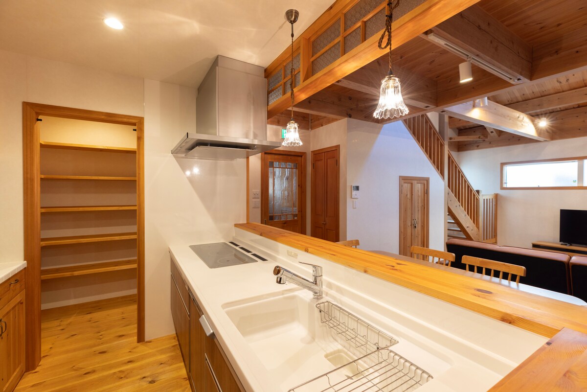 Μια ήσυχη βίλα στη Φουκουόκα, περιτριγυρισμένη από τη ζεστασιά του 🌿ξύλου Αυτή η αυθεντική ξύλινη ζεστή βίλα βρίσκεται σε μια ήσυχη γειτονιά κοντά στην παραλία Mochi, σε μια ήσυχη γειτονιά που σας κάνει να ξεχάσετε την κίνηση και τη φασαρία της πόλης. Καθώς μπαίνετε, θα βρείτε έναν άνετο χώρο που περιβάλλεται από το άρωμα του ξύλου, κάνοντάς σας να νιώθετε ότι έχετε έρθει σε μια βίλα στο βουνό μέσα στο δάσος.Το φυσικό ξύλο με πολλά δοκάρια, δάπεδα και οροφές σάς προσκαλεί να πάρετε μια βαθιά ανάσα με τη φύση. Ανοιχτό σαλόνι με απαλό φως από φεγγίτες σε έναν ευρύχωρο χώρο που μπορεί να φιλοξενήσει έως και 12 άτομα.Τη νύχτα, μπορείτε να απολαύσετε μια συζήτηση ενώ ατενίζετε τη φωτιά. Απολαύστε μια ανεπανάληπτη στιγμή με τους αγαπημένους σας σε αυτόν τον χώρο που είναι γεμάτος ηρεμία, ψυχική γαλήνη και τη "ζεστασιά του ξύλου". Ζήστε την πολυτέλεια της επαφής με τη φύση στην πόλη.