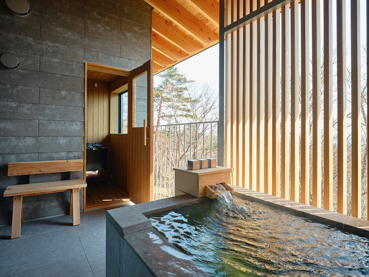 サウナ・露天温泉付きスイート客室|那須の森に佇む静かな貸別荘|SANU 2nd Home 那須3rd