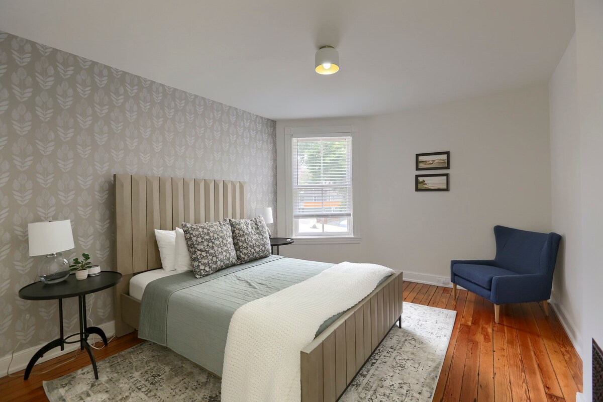ΑΠΟΔΡΑΣΤΕ στο ιδιωτικό, ευρύχωρο και πλήρως επιπλωμένο διαμέρισμά σας στον 2ο όροφο. Αποδράστε με τη δική σας βεράντα και το υπέρδιπλο κρεβάτι California! Το σπίτι είναι 110 ετών, αλλά ανακαινισμένο για την άνεσή σας. Δύο θέσεις στάθμευσης εκτός δρόμου! Λίγα λεπτά από το κέντρο του Λάνκαστερ (<2 μίλια), 2-3 μίλια από το Franklin & Marshall ή το Millersville U, 8 μίλια (18 λεπτά) από το Sight & Sound! Εύκολη πρόσβαση σε αξιοθέατα, όπως ψώνια σε outlet, πάγκους με φρέσκα προϊόντα, πάρκα και όλα όσα έχει να προσφέρει η κομητεία του Λάνκαστερ. Πολλά υπέροχα εστιατόρια και καφετέριες σε κοντινή απόσταση.