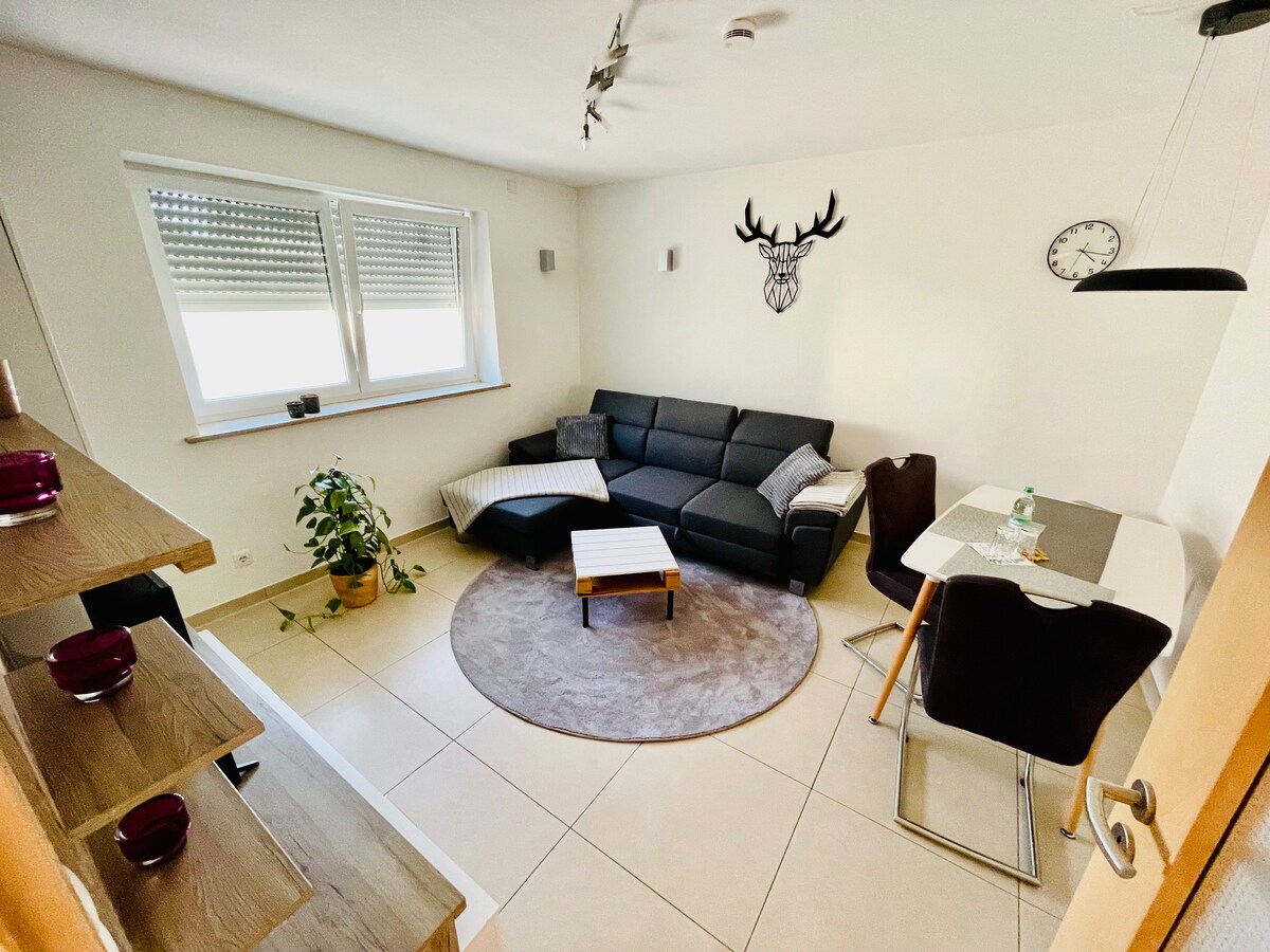 Ένα νέο διαμέρισμα σε μια ήσυχη τοποθεσία, αλλά κοντά στη μητροπολιτική περιοχή Nürneberg/Fürth/ Erlangen. Το δημοφιλές Playmobil Funpark βρίσκεται επίσης σε κοντινή απόσταση με 1,5 χιλιόμετρο. Φυσικά και μπορείς να πας με λεωφορείο. Η στάση είναι μόλις 50 μέτρα μακριά. Οι δωρεάν χώροι στάθμευσης είναι ακριβώς δίπλα στο σπίτι