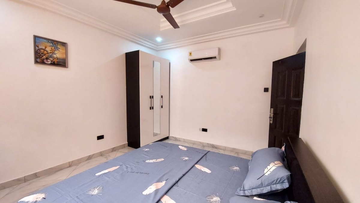 Καλώς ήρθατε στο όμορφο διαμέρισμά μας με ένα υπνοδωμάτιο στην Άκκρα με θέα στην Αχιμότα! Με 1 κρεβάτι και φουτόν, μπορεί να φιλοξενήσει έως και 3 επισκέπτες. Απολαύστε μοντέρνα διακόσμηση, τηλεόραση επίπεδης οθόνης και όλες τις απαραίτητες συσκευές. Χαλαρώστε στο μπαλκόνι ή στο αίθριο του τελευταίου ορόφου. Το κτίριο είναι ασφαλές και απέχει μόλις 20 λεπτά από το αεροδρόμιο και το κέντρο της πόλης. Στα κοντινά σημεία ανήκουν το Achimota Forest Reserve, το Achimota & Accra Mall, το Kwame Nkrumah Memorial Park και το Labadi Beach. Λίγα λεπτά με το αυτοκίνητο από πολλές παροχές στην πόλη.