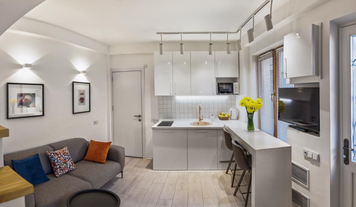 Explore Tbilisi on foot from the city center. Stay in a 19th-century building with a sunny apartment featuring a comfy living room, fully-equipped kitchen, king size bed, AC/heating. Steps from Rustaveli Ave. 1-5 min walk to Freedom Square, Metro, restaurants, shops, parks, museums, theaters, cinema.