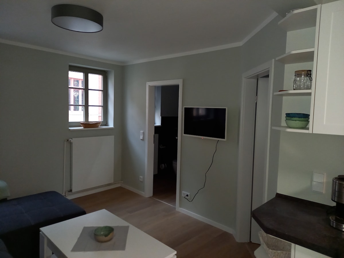 Μικρό, ανακαινισμένο με αγάπη διαμέρισμα (περίπου 38 τ.μ.) στο κέντρο της πόλης του Βίσμαρ, αλλά σε ήσυχη τοποθεσία. Η αγορά, το λιμάνι, ο σιδηροδρομικός σταθμός, ο σταθμός λεωφορείων και οι μεγάλοι χώροι στάθμευσης βρίσκονται σε απόσταση λίγων μόνο λεπτών (3 έως 6 λεπτά) με τα πόδια. Το κατάλυμα: περίπου 38 m², κατάλληλο για 2 (μέγ. 3 άτομα - κατόπιν συνεννόησης), Το κρεβάτι έχει διαστάσεις 200 x 200 cm, ο καναπές είναι πτυσσόμενος, Δυνατότητα στάθμευσης ποδηλάτων στην αυλή, μπαλκόνι προς την πίσω αυλή, δυνατότητα στάθμευσης μικρής διάρκειας μπροστά από το σπίτι.