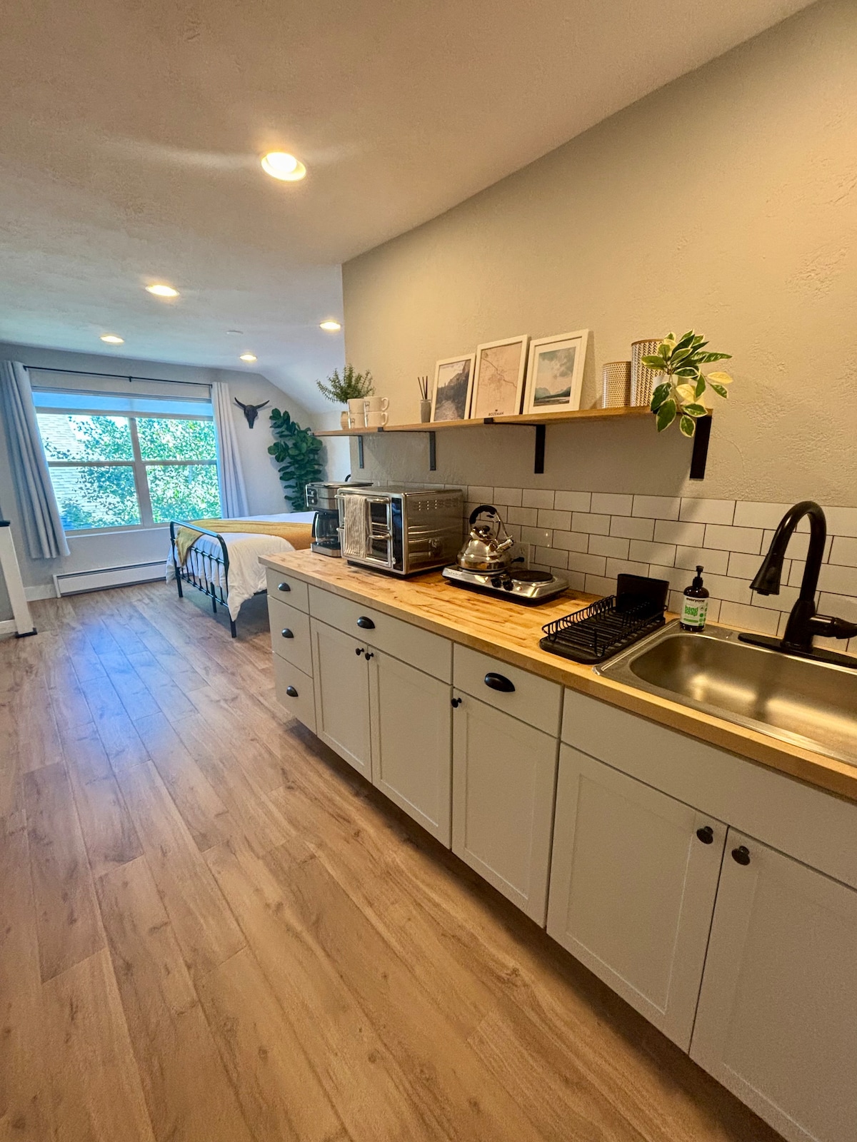 Welcome to your mountain getaway in Bozeman. Centrally located, only 5 miles from Main Street, 4 miles from MSU, and 7 miles from Bozeman airport. Easy access to Big Sky (29 miles) and Bridger Bowl (15 miles). Fits 2 comfortably but there is an additional queen bed for 2 more if needed. Coffee/espresso maker with local coffee and cream. Kitchen is always stalked. Air purifier and quality bedding on a tempurpedic mattress. Trails, parks, and restaurants within walking distance.