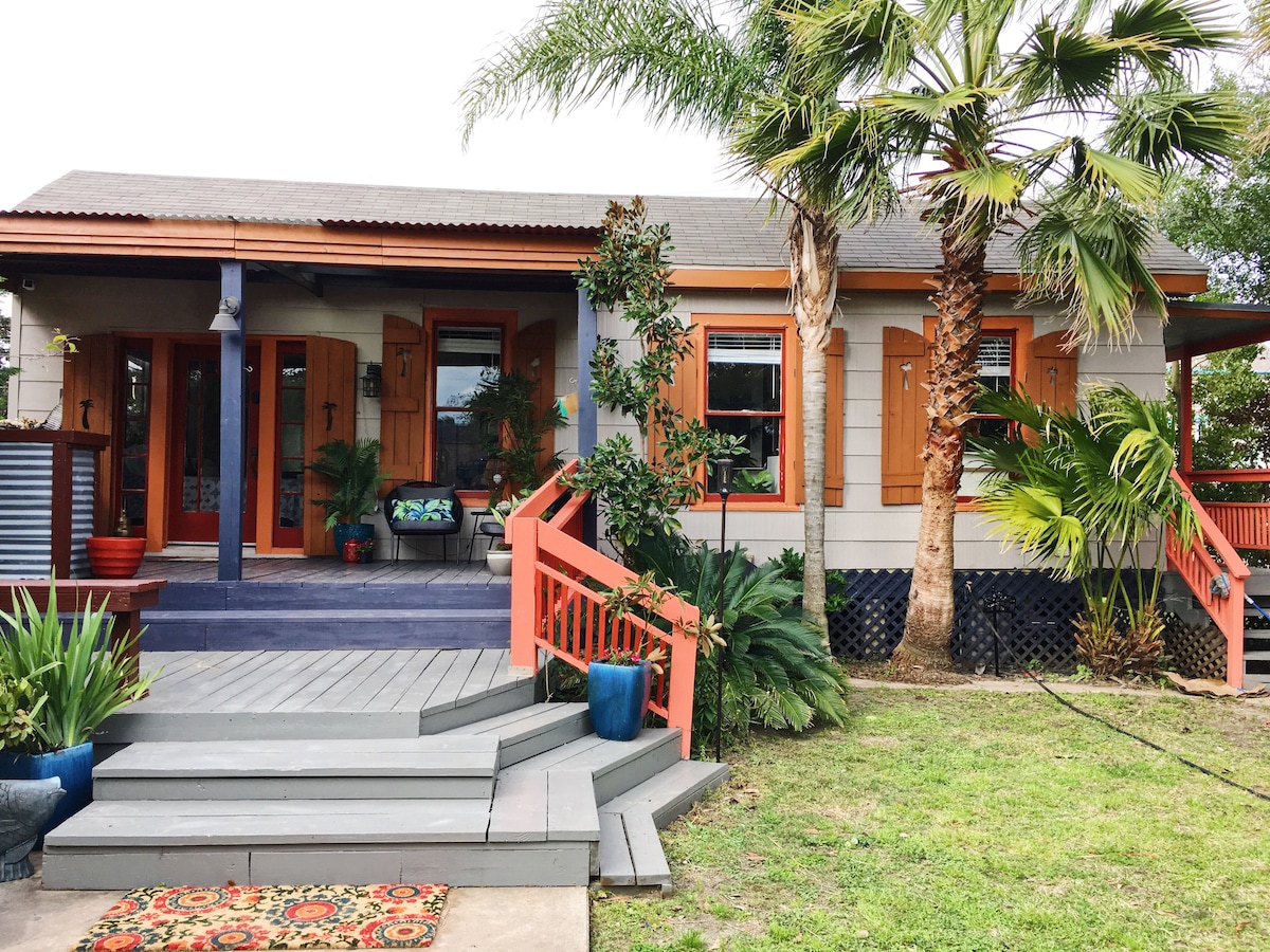 Ανακαινισμένο τον Μάιο του 2024. Κορυφαία τοποθεσία! Ιστορικό σπίτι χτισμένο το 1890 που βρίσκεται σε μια χαριτωμένη, καθαρή γειτονιά. Περιγράφεται από το περιοδικό Coast Monthly ως "πολυτελές καταφύγιο με αέρινη αίσθηση αντικέ". Γρήγορη διαδρομή με τα πόδια μέχρι την αποβάθρα Pleasure Pier. Ανακαινισμένο με πλήρως εξοπλισμένη κουζίνα, νέο στρώμα king-size 12/24, χώρο στάθμευσης. Τηλεόραση με καλωδιακή και Wi-Fi. 5 λεπτά με τα πόδια από το Galveston Seawall. Πρόσβαση σε εστιατόρια, ψώνια, νυχτερινή ζωή χωρίς οδήγηση. 5 λεπτά με το αυτοκίνητο από τον τερματικό σταθμό κρουαζιερόπλοιων του Γκάλβεστον και την ιστορική περιοχή Strand.