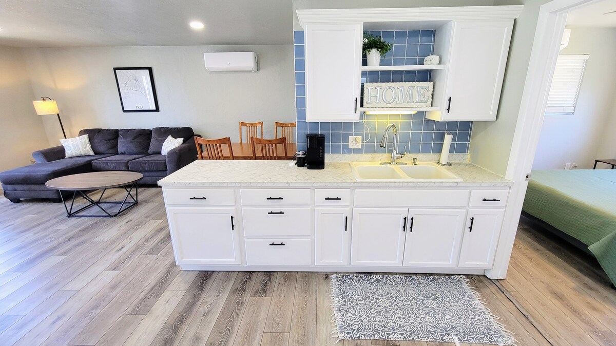 Χαλαρώστε σε ένα άνετο στούντιο που βρίσκεται σε μια ήσυχη γειτονιά, λίγα λεπτά από το ζωντανό κέντρο του Μπόιζι. Με εύκολη πρόσβαση στον αυτοκινητόδρομο, αυτό το σημείο είναι ιδανικό για να εξερευνήσετε το Μπόιζι και την κοιλάδα του θησαυρού. Εστιατόρια, μπαρ, ζυθοποιεία και διασκέδαση βρίσκονται σε μικρή απόσταση με τα πόδια ή με γρήγορη διαδρομή με σκούτερ. Το στούντιο διαθέτει πλέον ένα ειδικό γραφείο, ιδανικό για τηλεργασία ή μελέτη. Περπατήστε τέσσερα τετράγωνα μέχρι το Boise River Greenbelt και το Whitewater Park ή χαλαρώστε στην αυλή με τζάκι και μπάρμπεκιου.