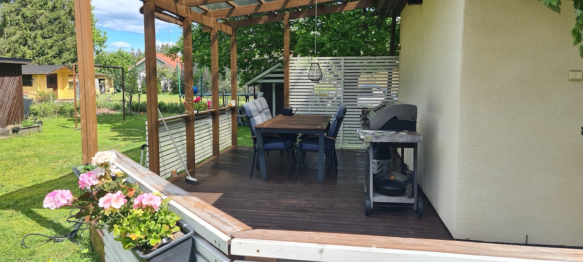 Ο χώρος μου ήταν κάποτε η σοφίτα ενός αχυρώνα, αλλά τώρα είναι ένα άνετο σπίτι με όλα όσα χρειάζεστε για τη σύγχρονη ζωή. Βρισκόμαστε πολύ κοντά στο Εθνικό Πάρκο Nuuksio: η συλλογή μανιταριών και μούρων είναι δυνατή σε κοντινή απόσταση. Με λίγη τύχη μπορείτε να δείτε ελάφια και ελάφια από τη βεράντα. Το σπίτι παίρνει εύκολα τέσσερα άτομα, αλλά με καναπέδες και επιπλέον στρώματα, μερικά ακόμα. Τα κατοικίδια είναι ευπρόσδεκτα, αν συμπεριφέρονται σωστά. Διατίθεται σάουνα κατόπιν αιτήματος και με χρέωση 20 €.