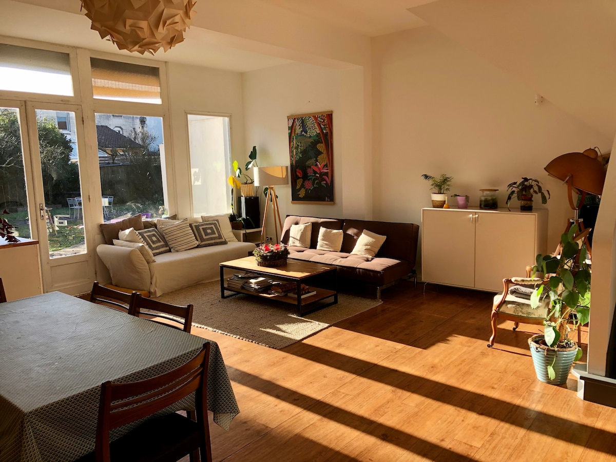 80 τ.μ. μόνο για εσάς! Αυτή η αρχοντική βρίσκεται 10 λεπτά με τα πόδια από το κέντρο της πόλης και είναι ιδανική για να επισκεφθείτε το Μπορντό με την οικογένεια, με το σύντροφό σας ή μόνος/η. Πολύ άνετο και ζεστό, είναι κατάλληλο για διαμονή από 1 έως 4 άτομα. Κοντά σε όλες τις υπηρεσίες, το περιβάλλον είναι ήσυχο και ευνοϊκό για χαλάρωση. Ο σταθμός τραμ Place Stalingrad και η Πέτρινη Γέφυρα απέχουν 3 λεπτά από το σπίτι. Ιδιωτικός χώρος στάθμευσης 2 λεπτά από το σπίτι. 4 €/D ΑΠΑΓΟΡΕΥΟΝΤΑΙ ΤΑ ΠΑΡΤΙ, ΤΑ ΠΑΡΤΙ ΚΑΙ ΟΙ ΣΥΝΑΘΡΟΙΣΕΙΣ.