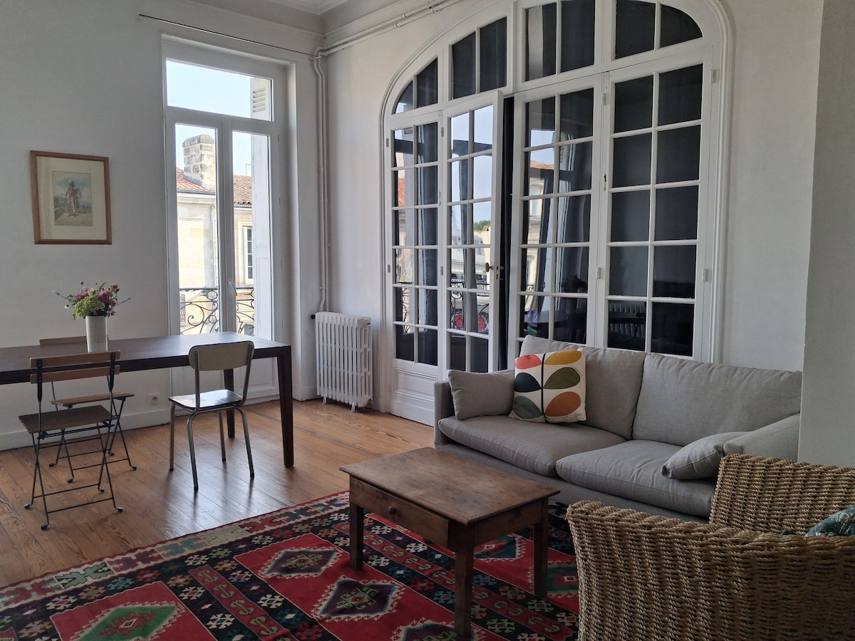 Διαμέρισμα του 18ου αιώνα στην περιοχή Sainte Croix & Saint Michel σε ήσυχη πλατεία. 3 λεπτά από την όχθη του ποταμού, πέντε λεπτά από το τραμ Saint Michel C & D. Θέα στο Hôtel de la Monnaie και στον πύργο Saint Michel. 70 τ.μ. πρόσφατα ανακαινισμένο επιπλωμένο με αντίκες προσφέρει μια σύγχρονη-αυθεντική εμπειρία στο Μπορντό. Πλήρως εξοπλισμένη κουζίνα, μεγάλο σαλόνι και τραπεζαρία, κρεβάτια υψηλής ποιότητας, ευρύχωρο μπάνιο με μπανιέρα και ντους, δωρεάν WiFi, τηλεόραση, Blu-ray και μηχανή εσπρέσο.