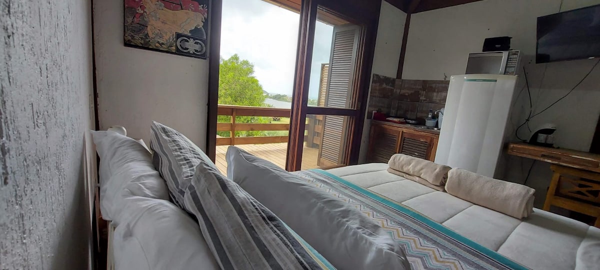 Ευρύχωρη και ήσυχη σουίτα | Χαλαρώστε σε μια ευρύχωρη, αεριζόμενη και ήσυχη σουίτα, περιτριγυρισμένη από τη φύση. 🛏 Άνεση: Κρεβάτι Queen + Μονό κρεβάτι 🌅 Ιδιωτικό μπαλκόνι: Αιώρα για ξεκούραση και απίστευτη θέα Ιδιωτικό 🚿 μπάνιο 📺 Smart TV για στιγμές αναψυχής Κοινόχρηστη 🍽 κουζίνα με πανοραμική θέα στις λίμνες Προνομιακή 📍 τοποθεσία: 🏖 2 χλμ. από την παραλία Rosa 🚶♂️ 700 μέτρα από το κέντρο της Ibiraquera 🌊 2-2,5 χλμ. από τις Λιμνοθάλασσες 🔹 Το τέλειο καταφύγιο για να χαλαρώσετε