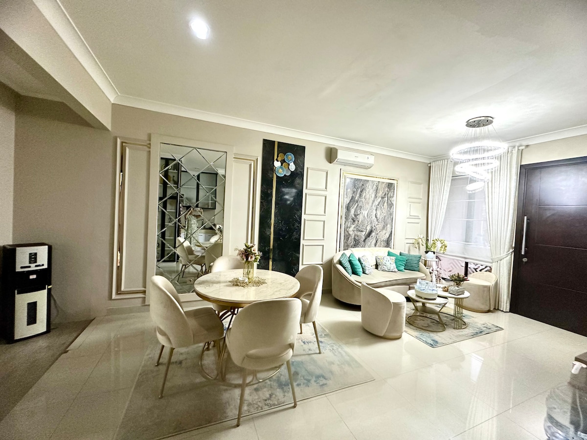 Η τοποθεσία μας βρίσκεται στο κέντρο της πόλης, κοντά στον τερματικό σταθμό λεωφορείων "Leuwi Panjang", 2 μεγάλα νοσοκομεία, το εμπορικό κέντρο Pasar Baru και 2 σημεία πρόσβασης με διόδια. This 3-bed + 3-bath + 1 undercover car park house provides easy access to explore the beauty of Bandung, West Java. Προσφέρει ένα ήσυχο περιβάλλον, καθώς βρίσκεται σε μια γωνιά ενός Elite Housing Complex με μόνο μία πρόσβαση. Σε κοντινή απόσταση, μπορείτε να βρείτε το σούπερ μάρκετ "Borma" ή την παραδοσιακή αγορά Caringin.
