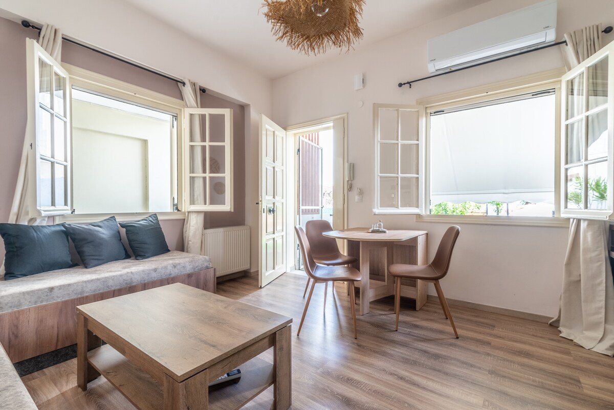 Μόλις λίγα βήματα από την παραλία, αυτό το γοητευτικό ισόγειο διαμέρισμα προσφέρει θέα στη θάλασσα, δύο μπαλκόνια, ένα ζεστό υπνοδωμάτιο και έναν φωτεινό ενιαίο χώρο σαλονιού και κουζίνας. Πλήρως εξοπλισμένο με WiFi, κλιματισμό, Netflix, παιχνίδια και όλα όσα χρειάζεστε για τις τέλειες διακοπές στην Κρήτη. Φιλικό για οικογένειες, με εύκολη πρόσβαση σε εστιατόρια, καφέ, σούπερ μάρκετ και στάση λεωφορείου. Φέρτε το χαμόγελό σας — εμείς φροντίζουμε τα υπόλοιπα!
