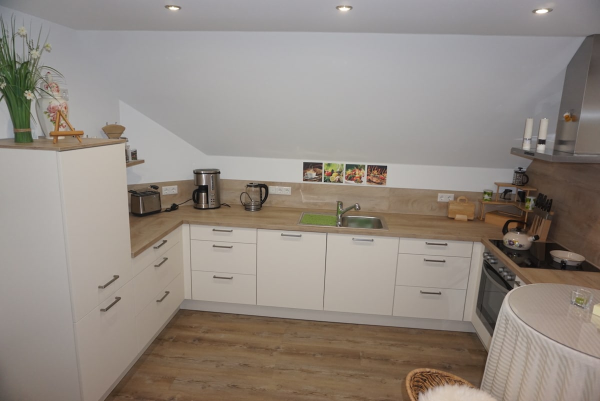Αυτό το άνετο διαμέρισμα 108 τ.μ. στο ισόγειο (χωρίς εμπόδια) διαθέτει μια γοητευτική τοποθεσία που μοιάζει με χωριό στα περίχωρα της πόλης, με εύκολη πρόσβαση στη μπαρόκ πόλη Fulda και τη γειτονική περιοχή Rhön. Εκτός από δύο υπνοδωμάτια και ένα παιδικό δωμάτιο, το διαμέρισμα διαθέτει δύο μπάνια. Το ευρύχωρο σαλόνι, εξοπλισμένο με τηλεόραση 55 ιντσών, τραπεζαρία ανοιχτού τύπου και πλήρως εξοπλισμένη κουζίνα, είναι σίγουρο ότι θα εντυπωσιάσει. Η ζεστή ατμόσφαιρα μιας ξυλόσομπας και μια μπανιέρα σας προσκαλούν να χαλαρώσετε και να νιώσετε άνετα.